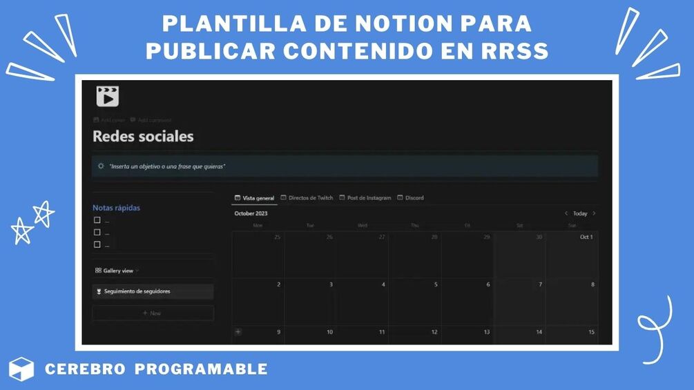 Si buscas una solución para gestionar y planificar contenido en redes sociales, te presento la plantilla de CerebroProgramable para Notion. Con esta herramienta, podrás:
